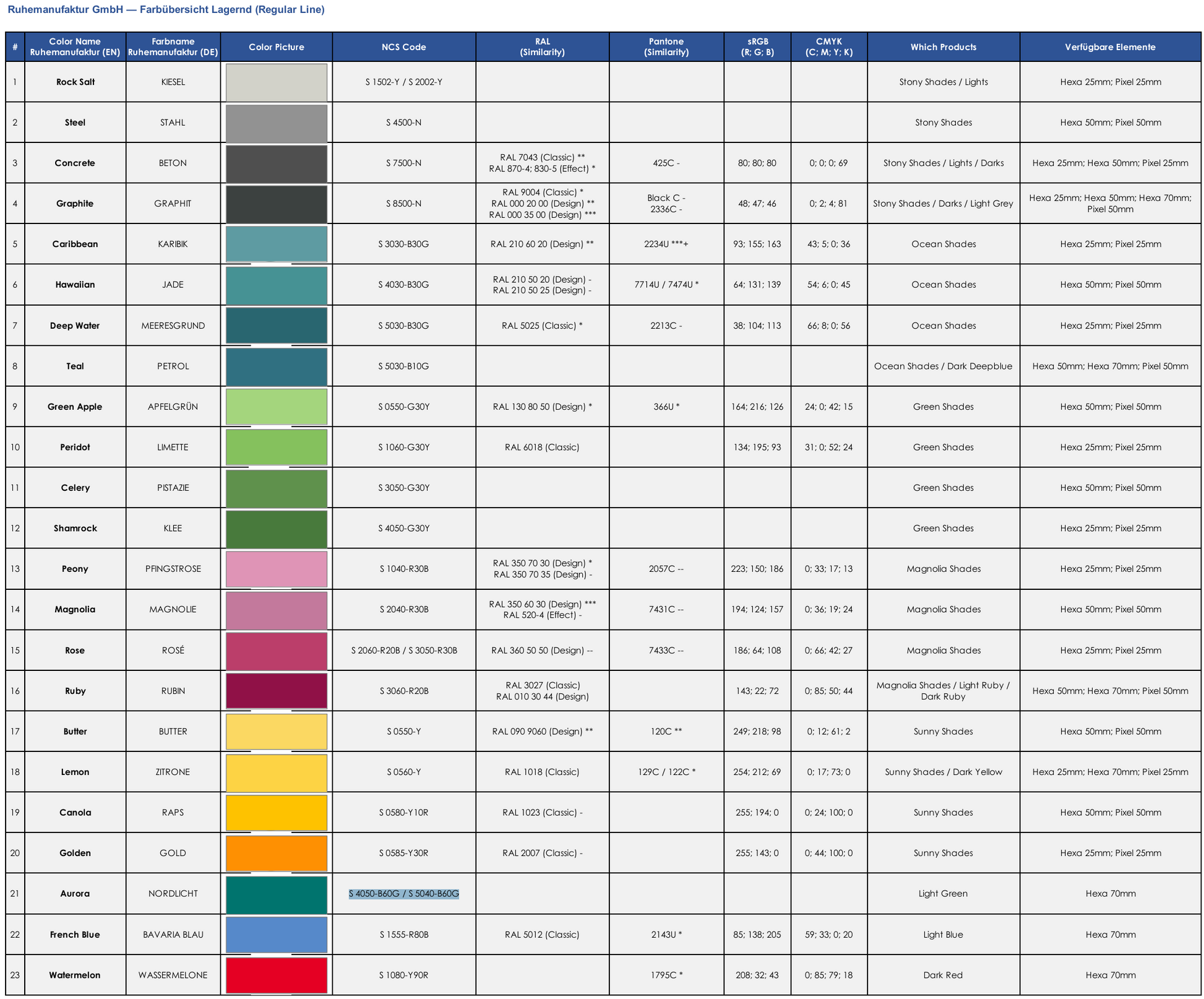 • Farben: individuell wählbar (Various)